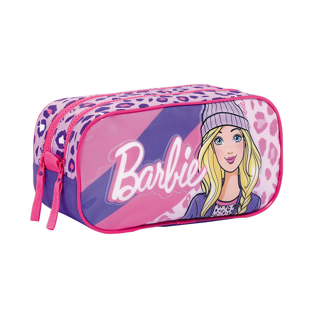 Barbie Cartuchera Doble Animal Print Rosa Y Negro