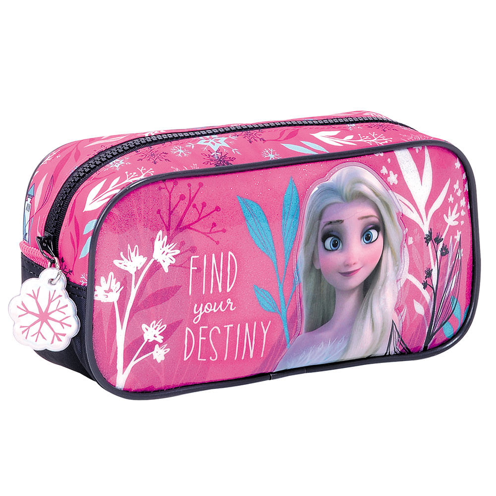 Esta cartuchera simple con diseño Destiny en color rosa es ideal para mantener los útiles escolares organizados. Con un compartimento espacioso, es perfecta para lápices y bolígrafos. El diseño de Elsa y Anna encantará a las niñas fanáticas de Frozen, aportando un toque de magia a sus estudios.
