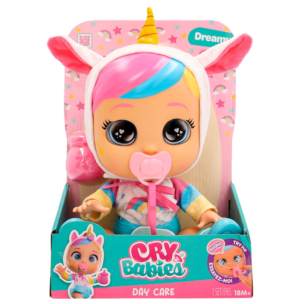 La Muñeca Cry Babies Day Care JENNA es la compañera perfecta para los pequeños que adoran cuidar y mimar a sus juguetes. Con 32 cm de altura y un diseño encantador, JENNA llora lágrimas reales cuando se le quita el chupete, brindando una experiencia de juego emocionalmente envolvente. Su suave textura y pijama colorido la hacen ideal para fomentar la imaginación y el juego de rol.