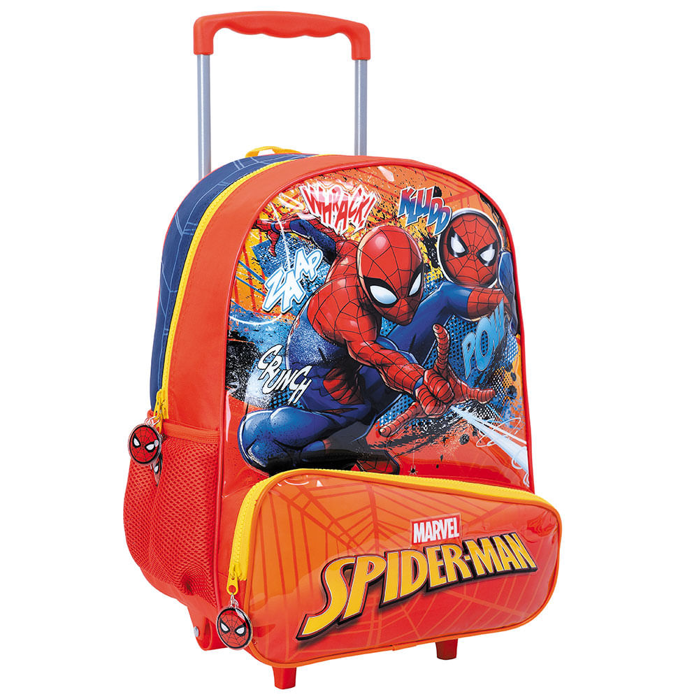 Con un diseño audaz en rojo, esta mochila con carro de 16 pulgadas de Spiderman es perfecta para llevar todo lo necesario a la escuela sin esfuerzo. Equipado con un sistema de ruedas y un asa ajustable, el carro facilita su transporte. Su diseño con la Spider Line la convierte en una mochila llamativa y funcional para los fanáticos de Spiderman.
